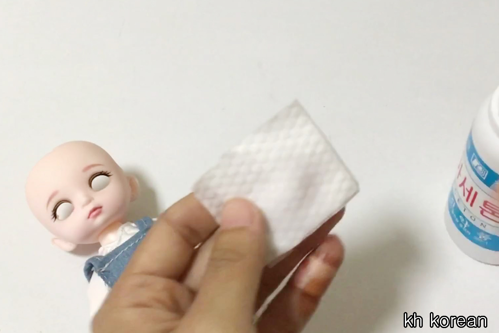 다이소 인형의 헤드는 PVC 소재이기 때문에 약국용 아세톤을 이용하여 기본 메이크업을 지워주는 것이 좋습니다.