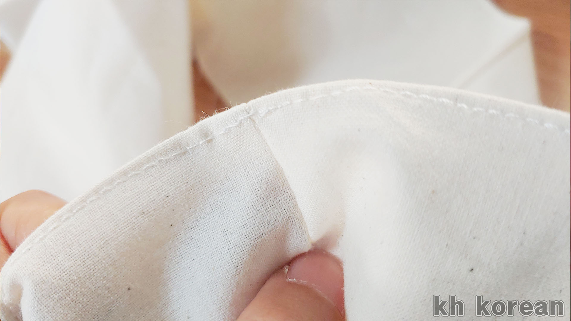 접힌 부분의 한 땀은 조금 오차가 발생했습니다.