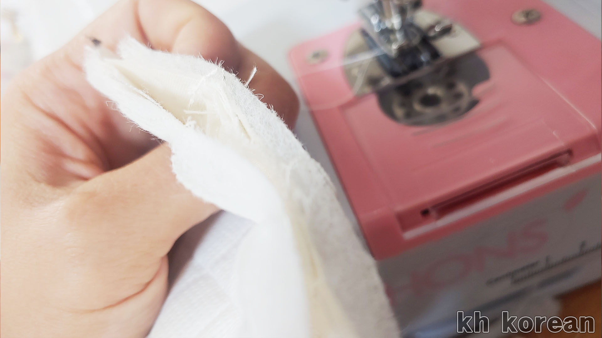 위에서 시접을 눌러 박아 봤습니다. 이 또한 총 3겹이니 무리 없는 수준입니다.