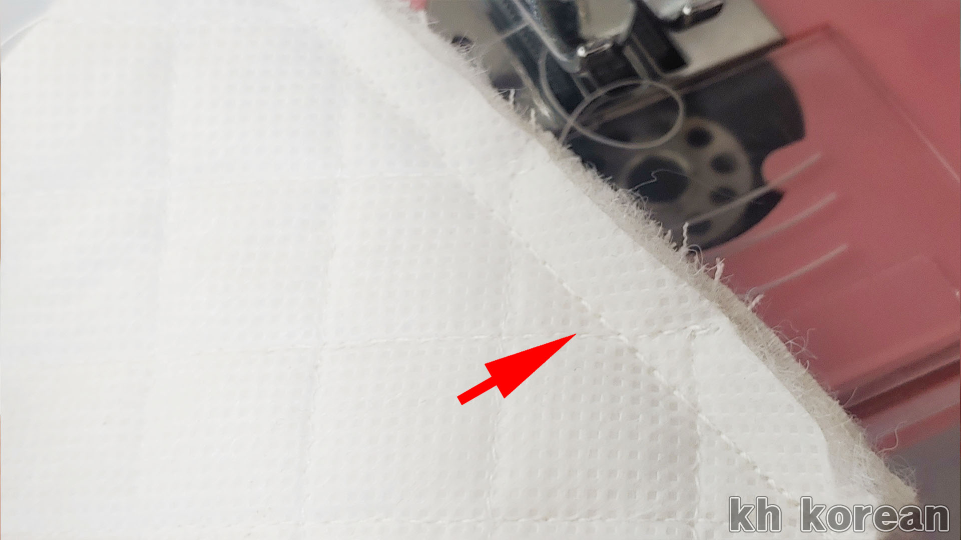 화살표 부분이 가리키는 곳에 일정한 재봉 라인이 보입니다. 과정이나 결과가 꽤 괜찮은 듯합니다.