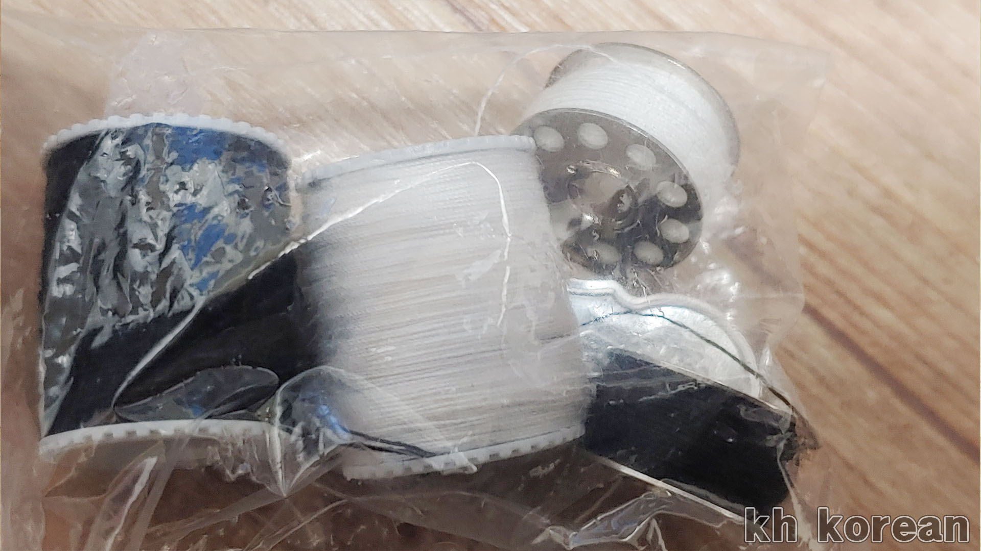 북집알이 기존 재봉틀의 것과 혼환되지 않으니 별도로 흰색과 블랙 색상의 실이 감아져서 온 여분의 두 개를 잘 보관해서 활용해봐야겠습니다. 새로 사려면 비싸진 않으므로 추가하려면 원단 주문 때 같이 해야하므로.