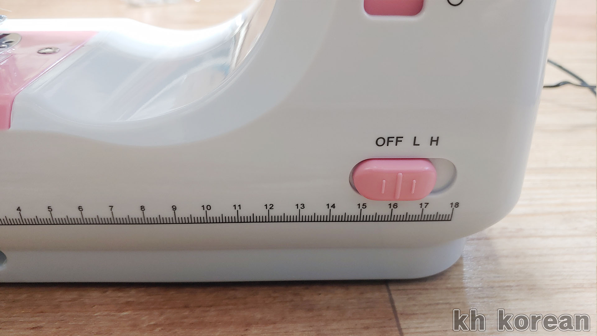 이게 패달의 속도를 조절하는 것인 줄 알았는데 OFF가 수동으로 페달을 밟아 재봉하는 방법이고, L은 낮은 속도로 천천히 자동으로 재봉하는 것이며, H는 더 높은 속도로 자동으로 재봉하는 것 입니다.