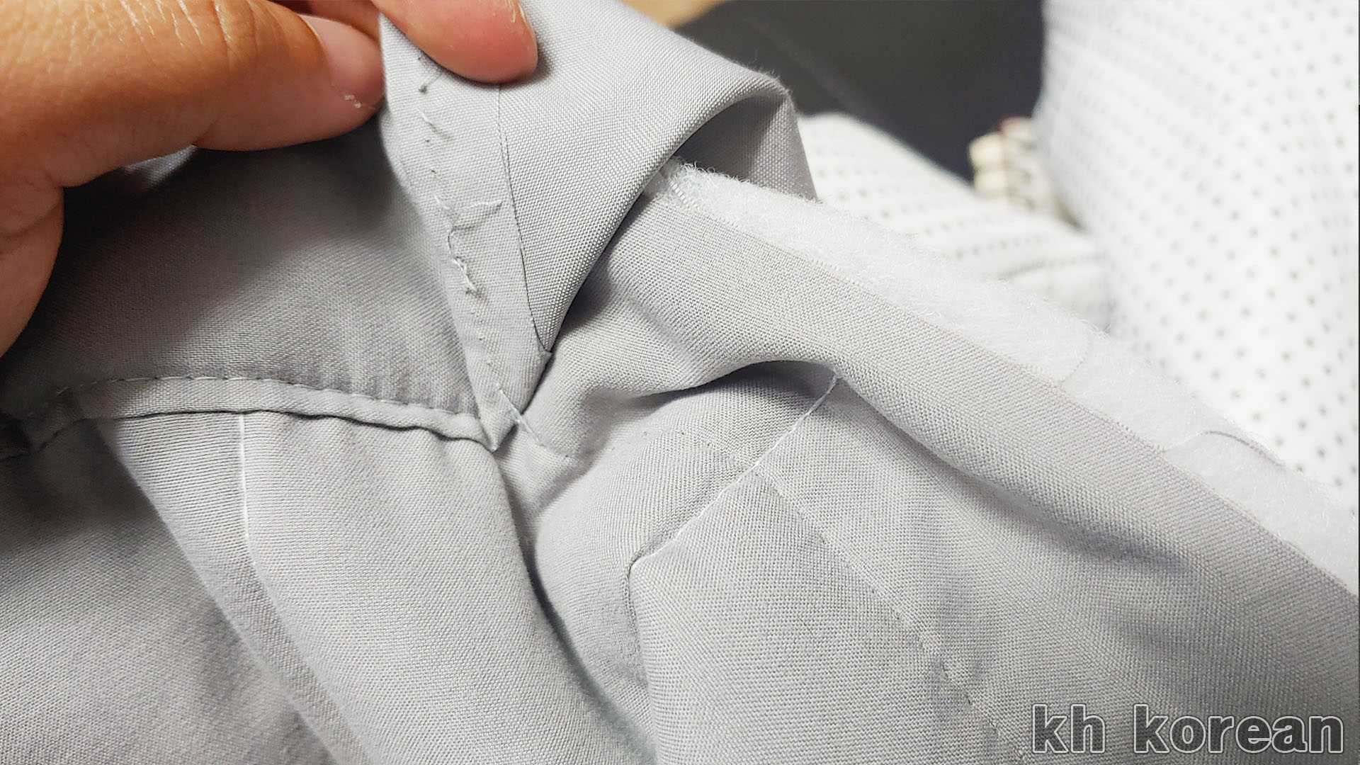 검은색의 실을 이용해서 인터록을 해볼까 하다가 오히려 더 지저분해 보일 수 있을 것 같아 흰 실로 오버로크를 한 건데, 흰색도 나쁘지 않겠다는 생각이 들었습니다.