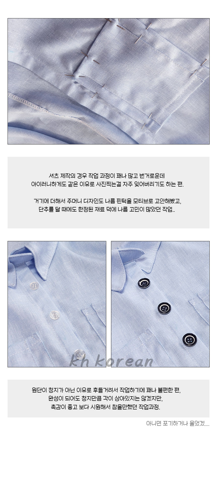 특히 단추를 고르는 부분의 경우 마음에 드는 단추가 없는 중에 그나마 차선으로 두 가지 선택지가 있어 그냥 결정하기엔 어려워서 보다 객관적으로 확인하기 위해 사진을 찍고 바라본 건데 덕분에 이미지 작업이 조금 더 풍성해진 느낌이 들었습니다.