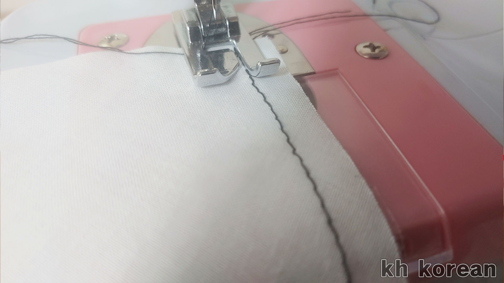 미니 미싱은 오른쪽에 가이드 선이 없기 때문에 저는 주로 노루발을 활용해 맞춥니다.