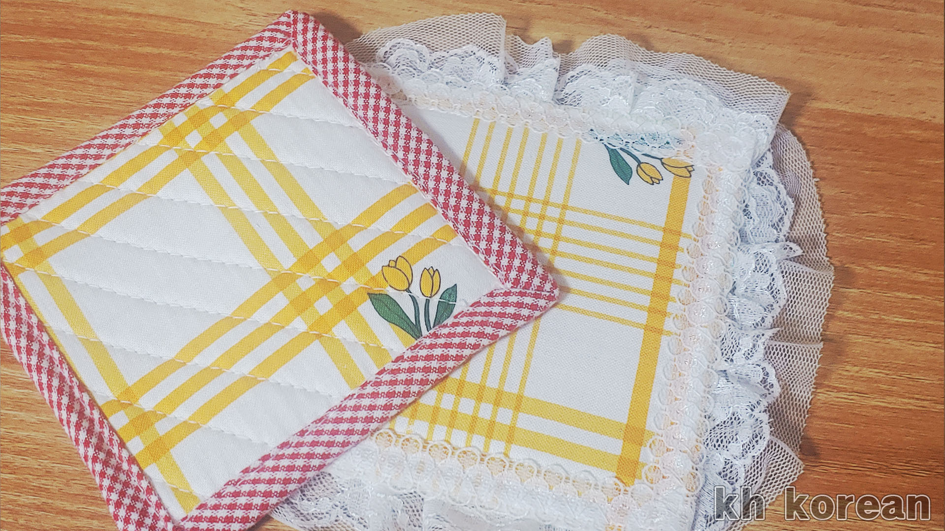 이를테면 티 매트나 발매트 등뿐만 아니라 경우에 따라 방석 앞면 등 튼튼하게 모양이 잡히면 좋을 부분에 누빔 솜 대신 활용할 수도 있을 것 같습니다.