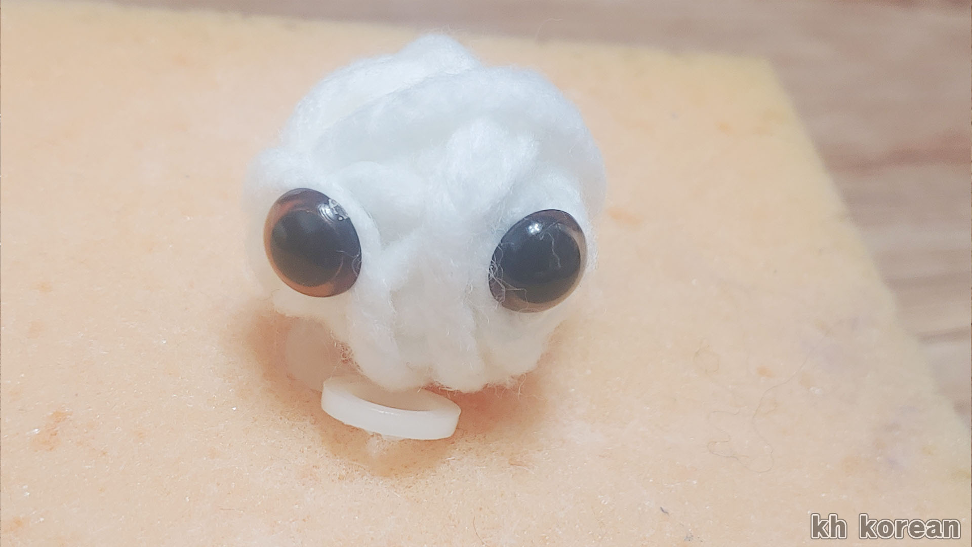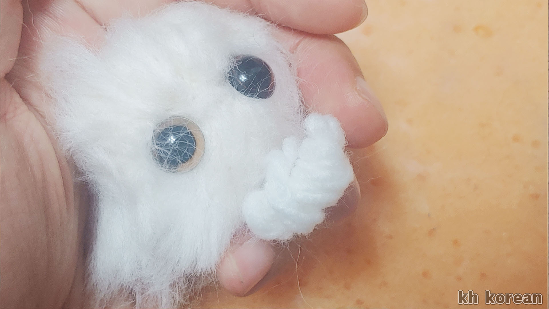 그리고 눈알을 꽂아주었는데 털실이 겹치는 쪽으로 끼워주니 고정이 되어 뒤쪽에 고정파츠는 사용하지 않았습니다.