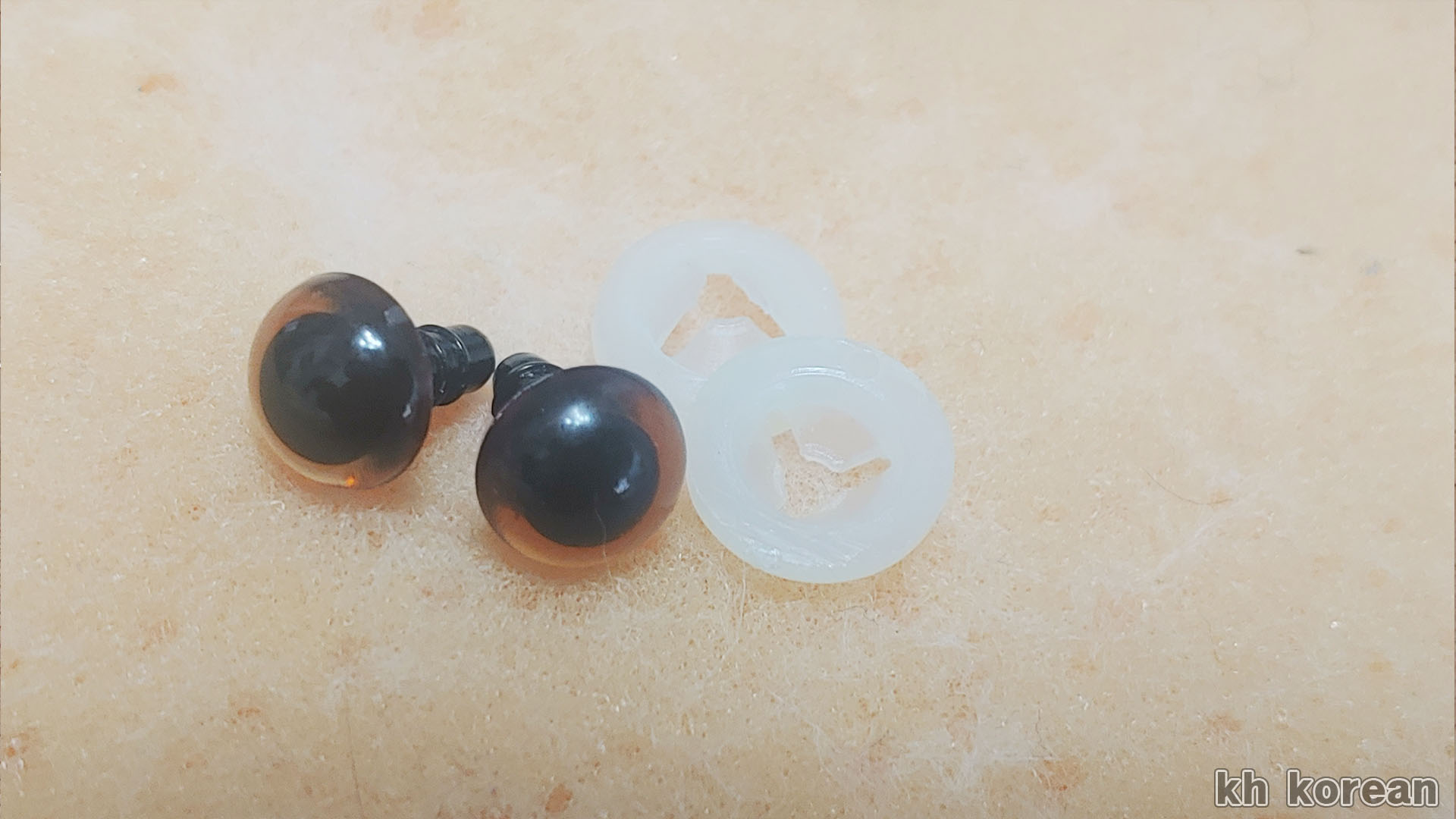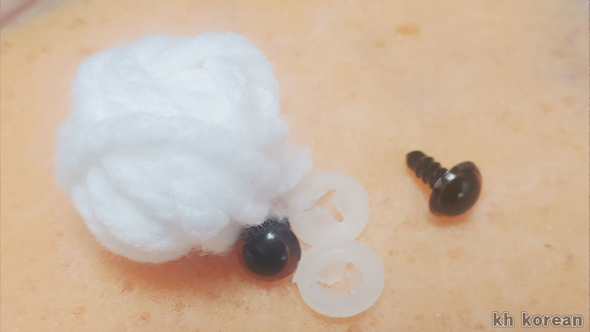 그리고 눈알을 꽂아주었는데 털실이 겹치는 쪽으로 끼워주니 고정이 되어 뒤쪽에 고정파츠는 사용하지 않았습니다.