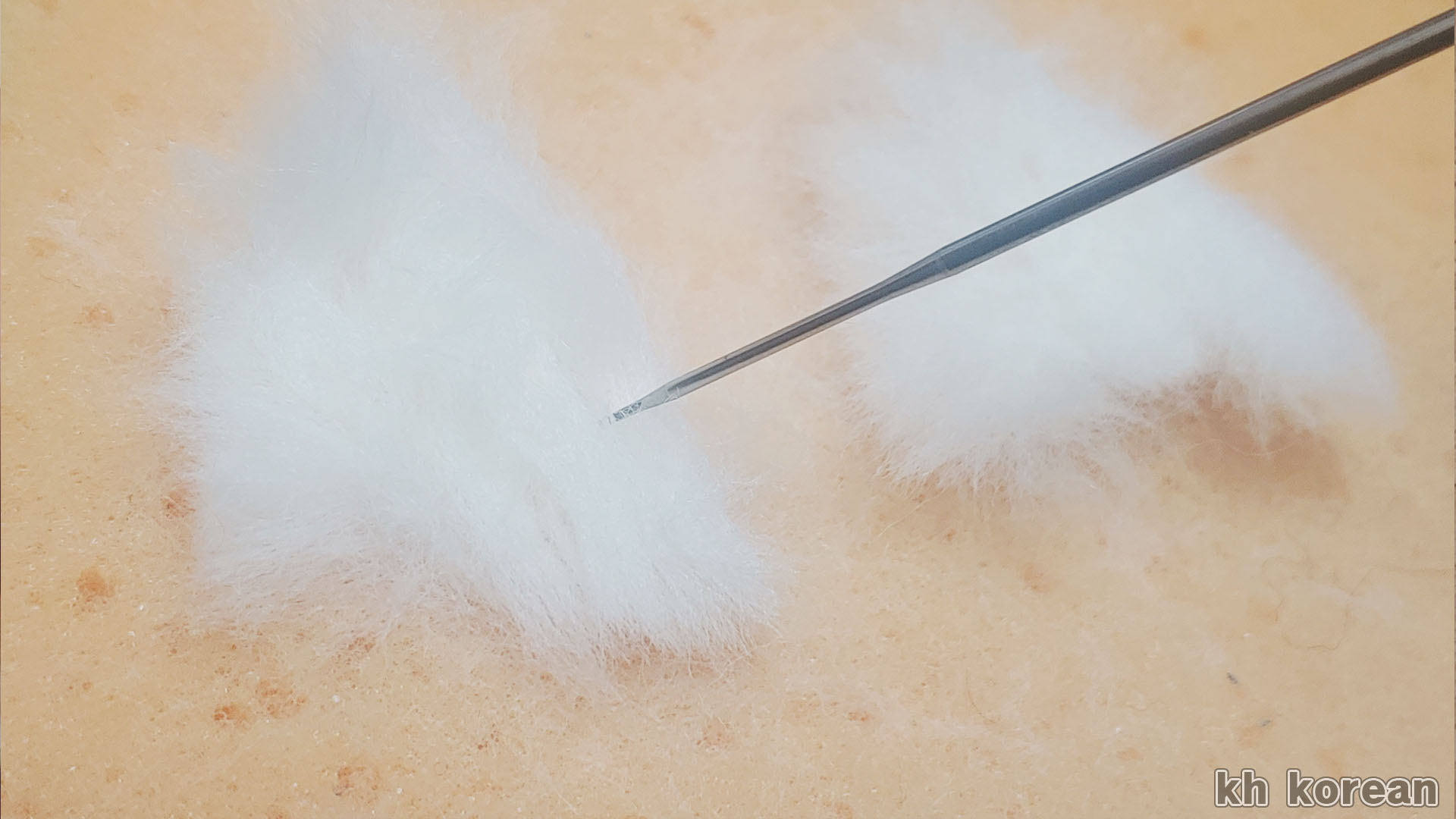 일단, 궁금증을 해결하기 위해 이번 작업에 필요한 기본 재료를 위와 같이 준비해놓고 털실을 약간 잘라서 활용해봤습니다. 양모펠트는 동일 색상으로는 양이 좀 부족해서 원하는 만큼의 작업은 나오지 않긴 했습니다만, 호기심 해결을 위해 테스트하는 마음으로 가볍게 작업을 시작해봅니다.