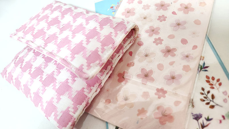 한참을 고민하면서 둘러보다가 벚꽃느낌과 가까운 핑크 색상의 원단을 골라서 아주아주 간단한 방법으로 파우치를 만들어봤습니다. 사각형 모양으로 그리고 자를 수만 있으면 가능한 방법입니다.