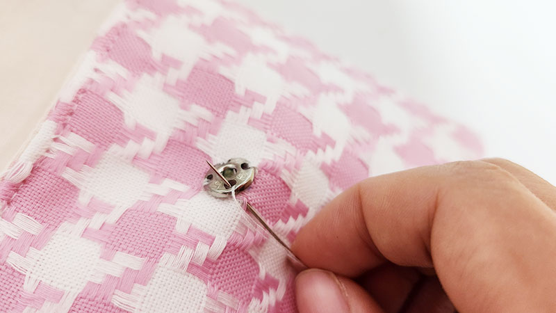 가벼운 소품에는 스냅단추를 주로 사용합니다. 그리고 손으로 바느질을 해줍니다.