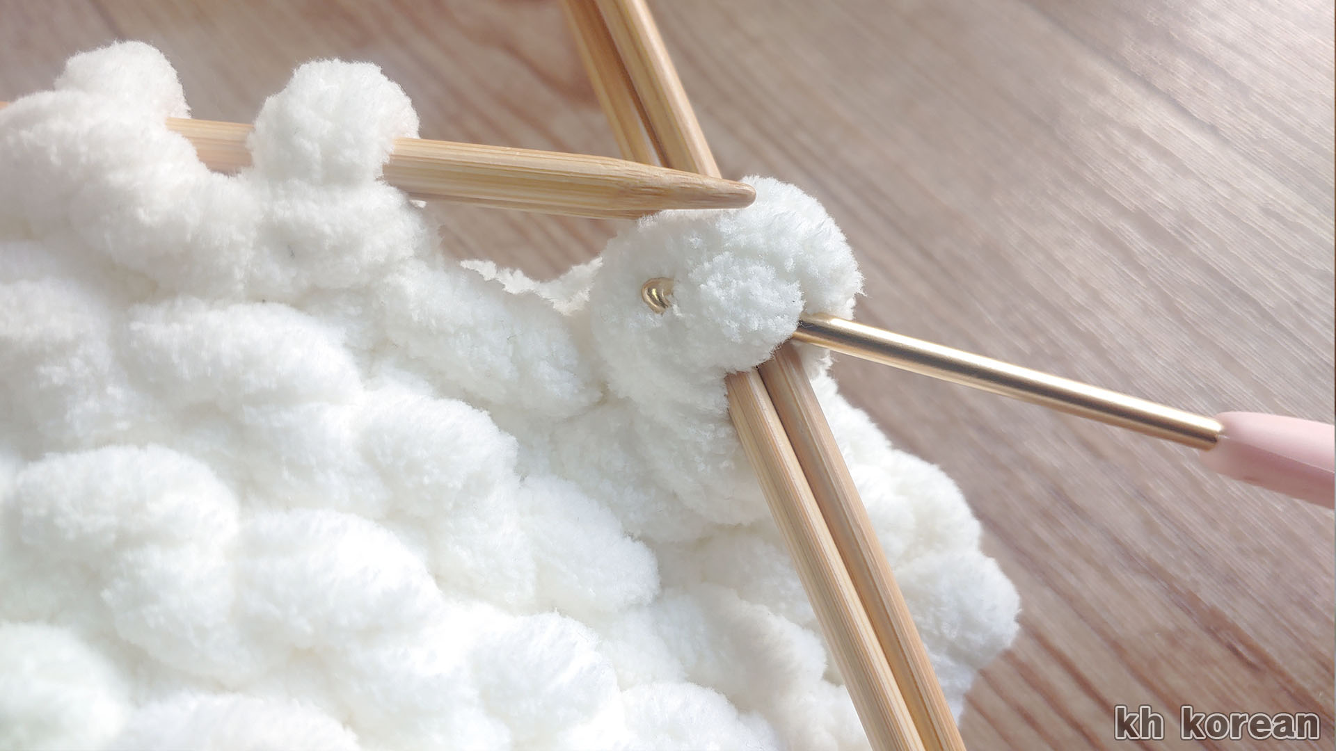 마지막 줄의 코막음 작업은 확실히 코바늘을 추가해서 작업하는 것이 빠르고 간단합니다.