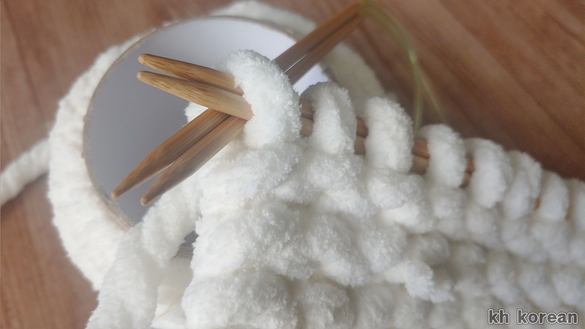 완성면에서는 너무 만족하는데 문제는 사이즈가 되겠습니다. 완성하고 보니 대형 대바늘이 좀 많이 아쉽긴 하네요.