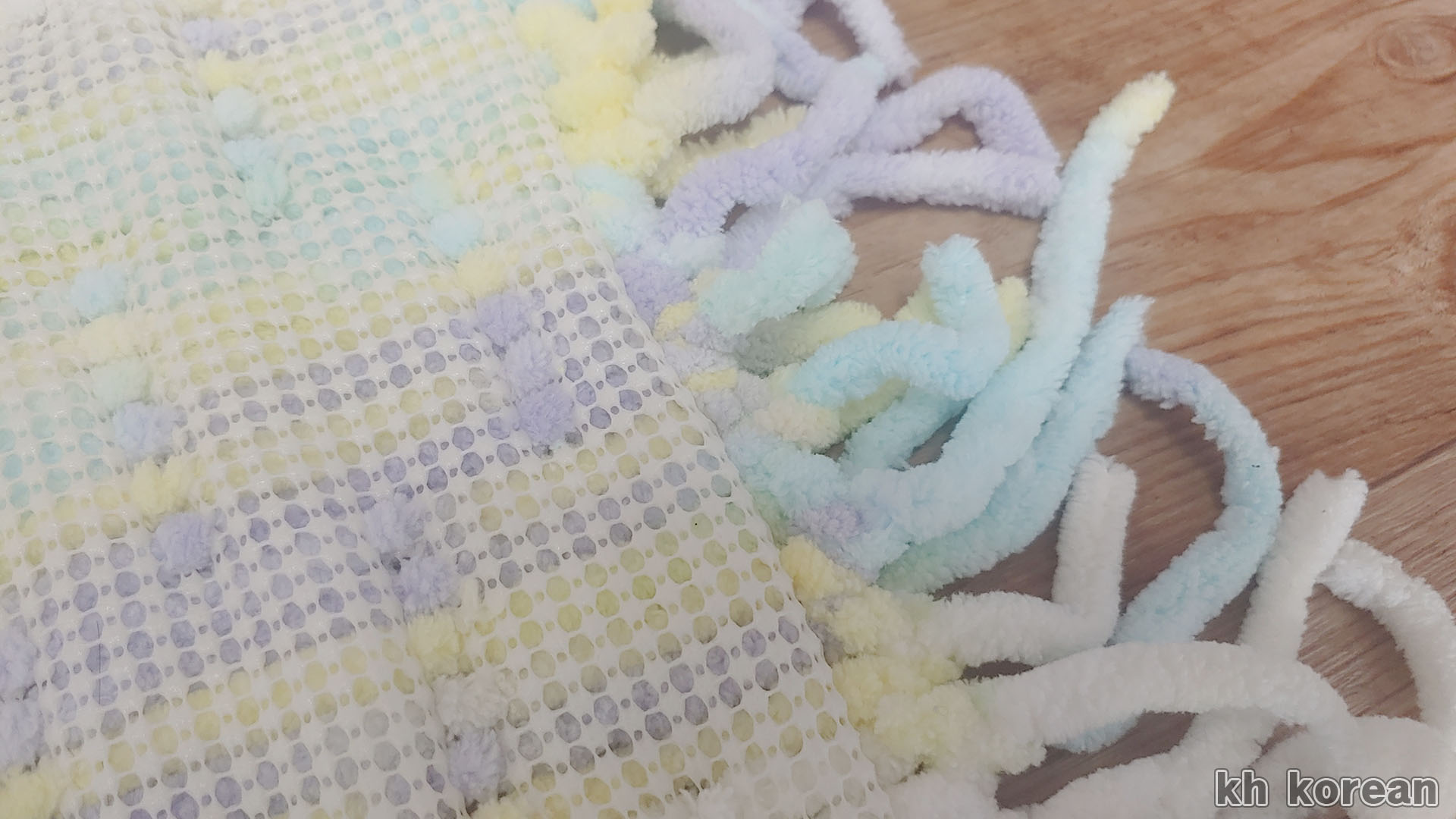 털실이 많이 보여야 하는 이유도 있겠지만, 매트가 미끄럼 방지 소재이기 때문에 바닥과 매트가 닿는 면적을 최대한 넓게 해 준 작업입니다.