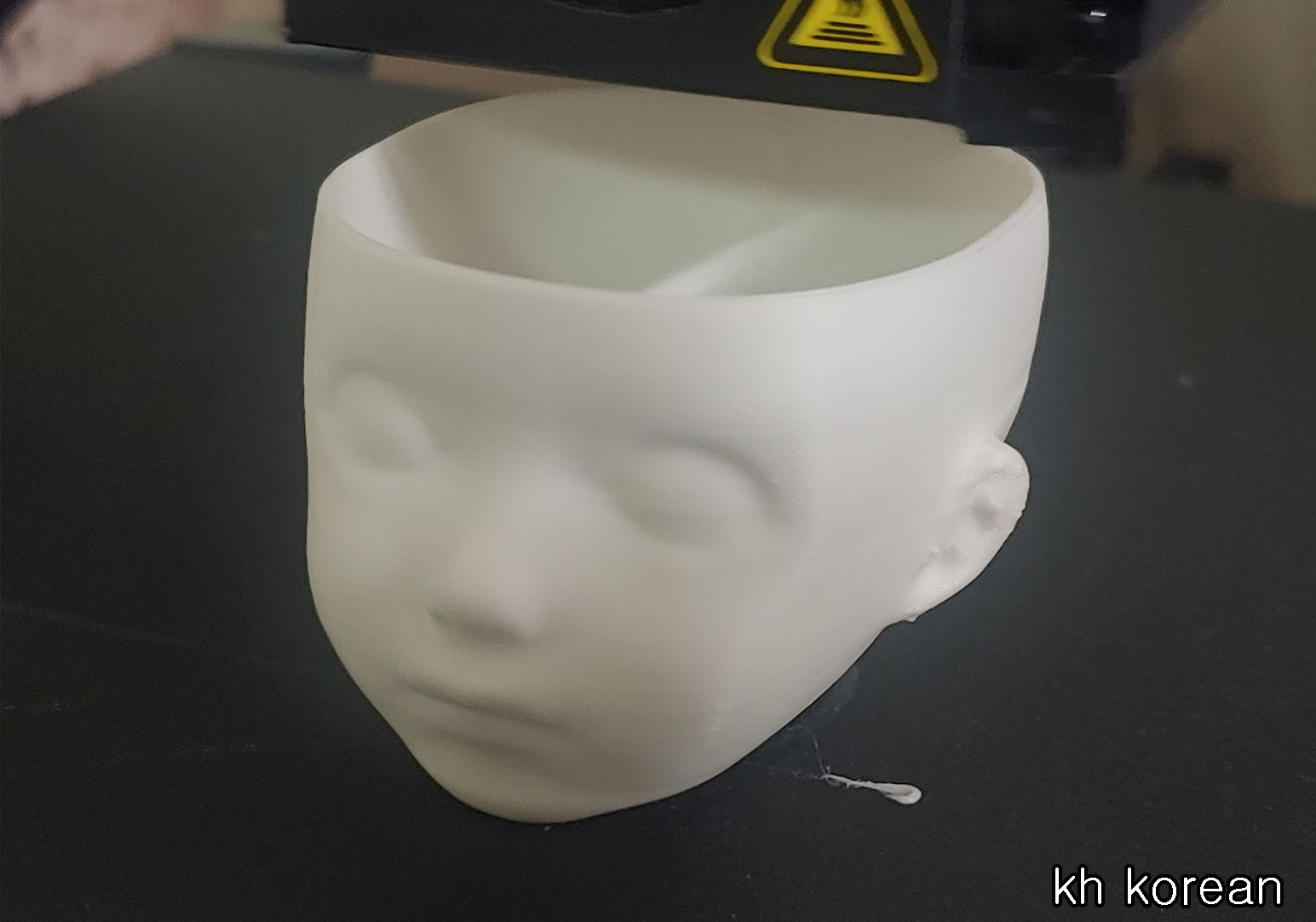 틈이 날 때마다 지브러쉬를 공부하면서 처음으로 출력해보았던 인형 헤드입니다. 서비스로 동봉된 필라멘트 화이트 색상을 사용하여 출력해보았습니다. 물론 기본적으로 출력 가능한 모형들을 제공받을 수 있고, 싱기버스 등에서 다운로드 또한 가능하지만, 제 목표는 자작 인형을 3D로 출력까지 해보는 것이었기 때문에 신나게 달렸습니다.